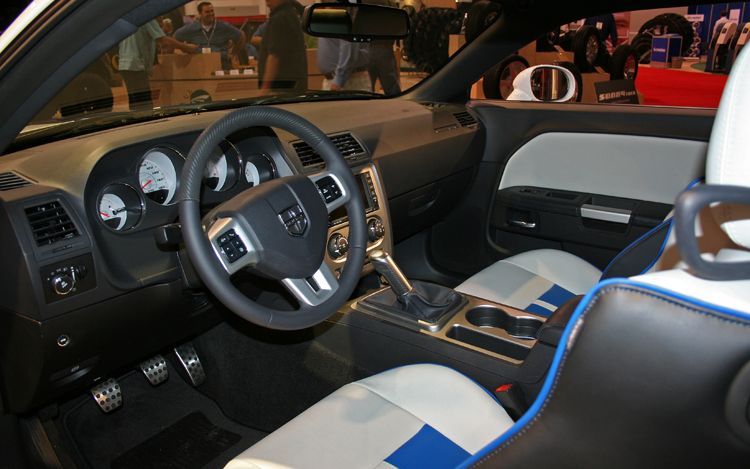 To celebrate the new refinements, Dodge's crafted the 392 Inaugural Edition. Buyers will have their choice of two exterior paint schemes -- Deep Water Blue with white stripes, or Bright White with Viper Blue stripes -- capped off with unique 20-inch SRT wheels, quad exhaust tips, and unique 392 emblems. Inside, Inaugural cars receive unique white leather seat skins, complete with blue stitching and insert stripes, along with embroidered logos on the front headrests.